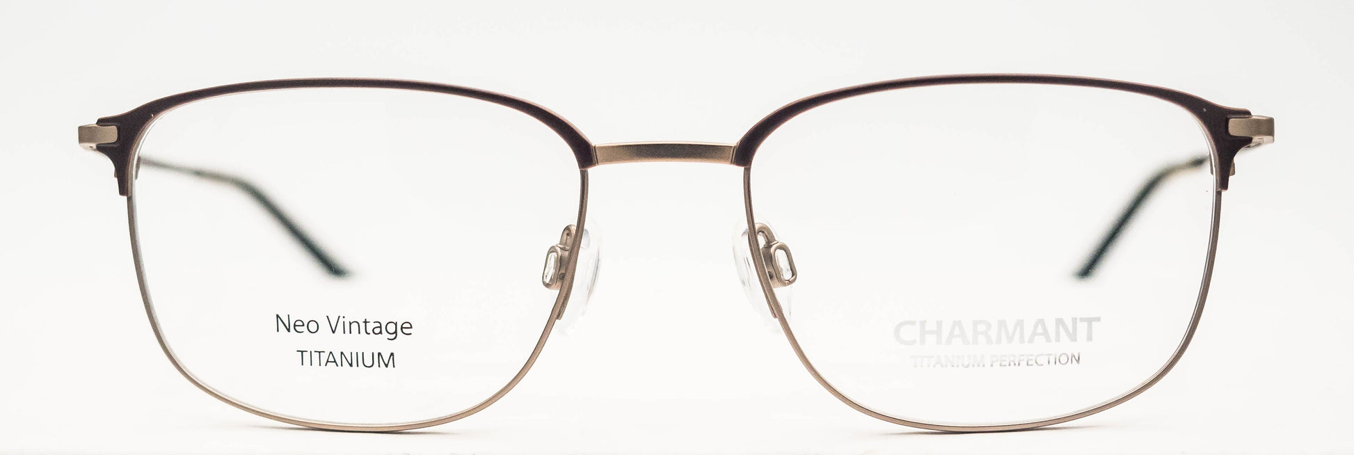Sleek and simple, the?Charmant 11464 flaunts titanium details of gunmetal, antique bronze to tell the story of its industrious roots. Finished with adjustable nose pads and a slim brow line, this classic shape emanates the finest of effortless luxury eyewear.