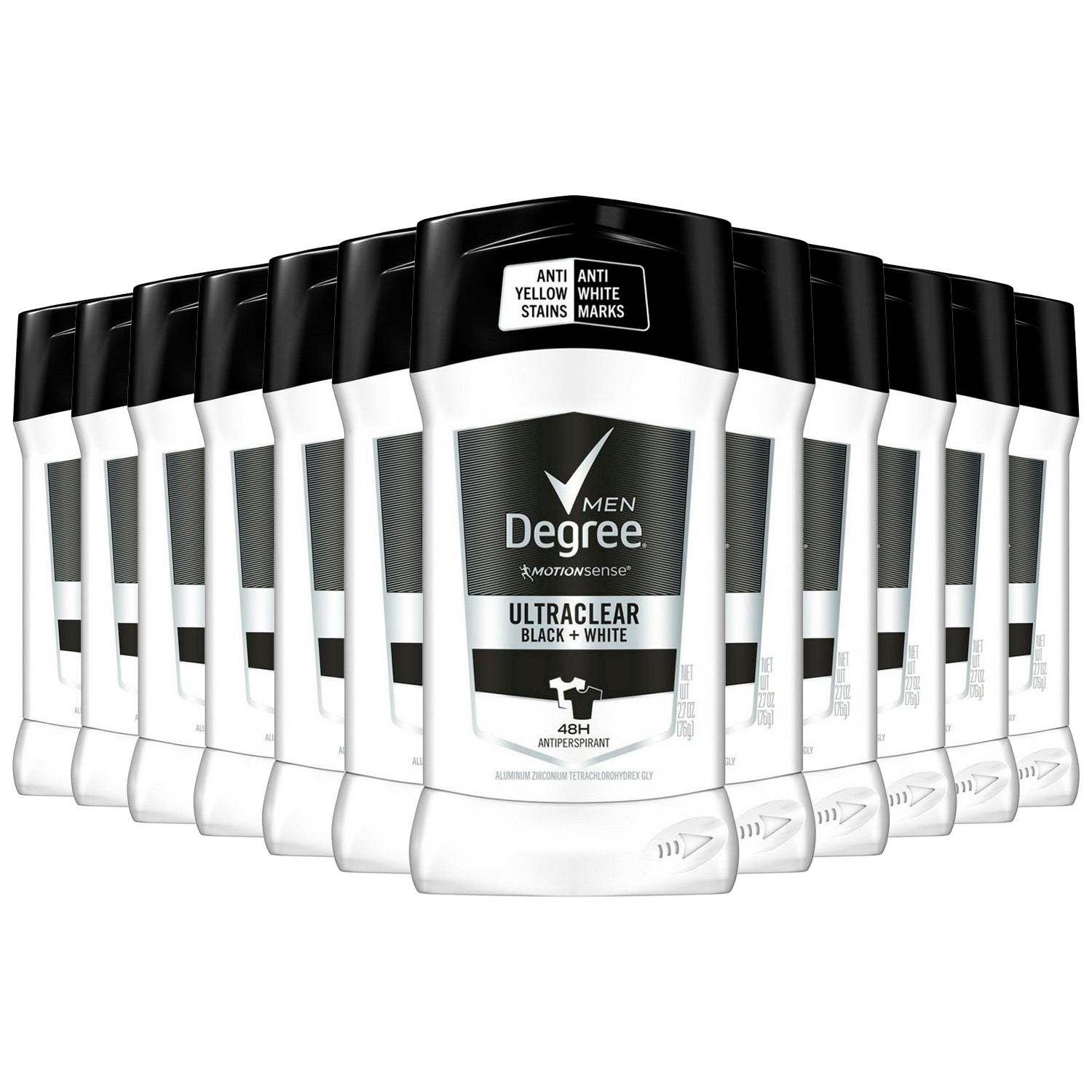 - Degree’s UltraClear Black+White antiperspirant deodorant stick with 48H non-stop protection, non-stop confidence and that protects against white marks and yellow stains on shirts, making it one of Degree best deodorant for men
