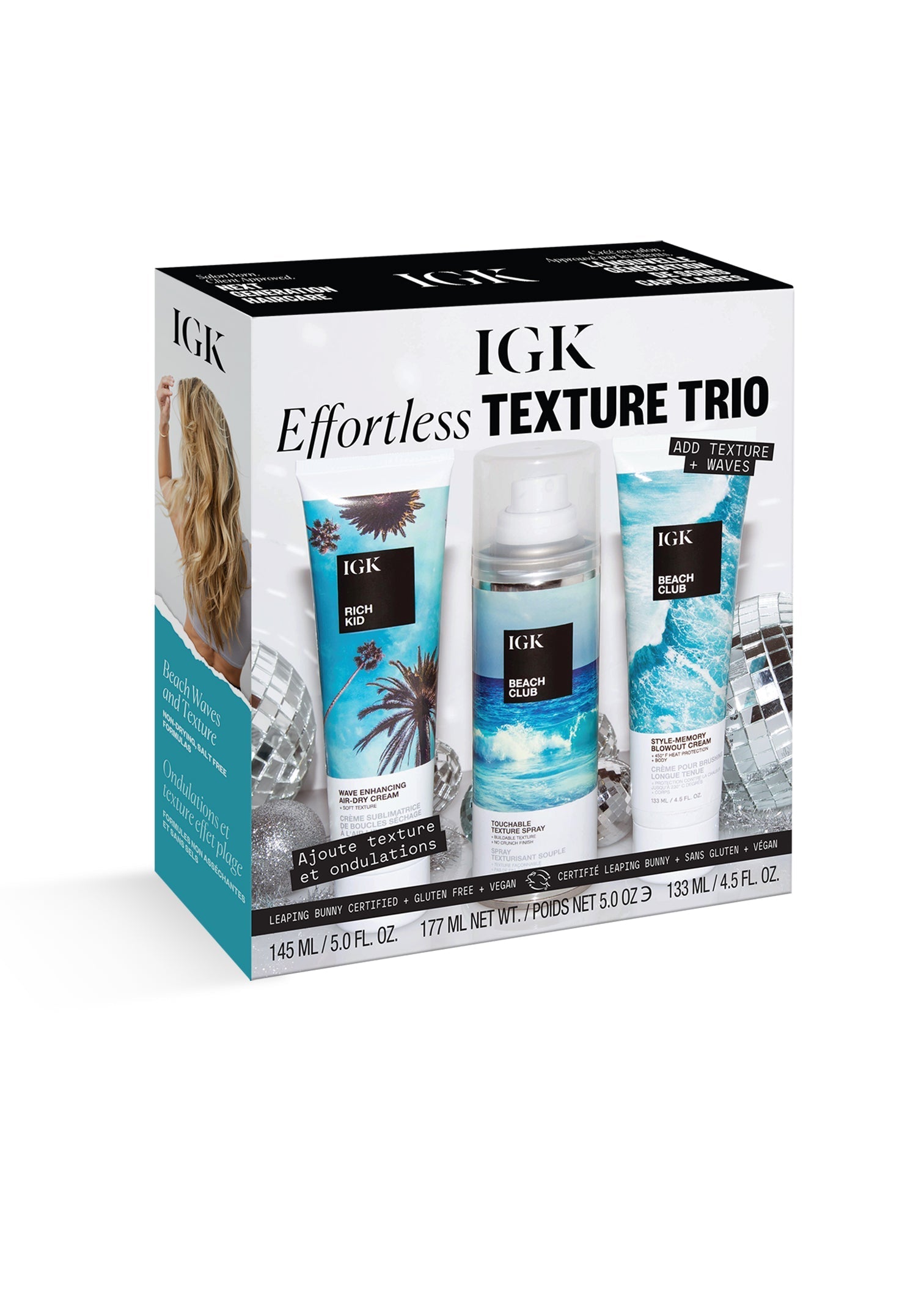 This must-have texture trio is your go-to solution for effortlessly beach waves. Begin with Beach Club Blowout Balm to protect your hair from the heat and set up buildable, voluminous bounciness. Follow with Beach Club Texture Spray to add long-lasting volume and sexy, tousled texture for effortlessly cool, beach waves. Finish with Rich Kid, to add piecey texture and shine. Its creamy gel formula has a lightweight hold that creates defined curls and waves without stiffness or frizz.