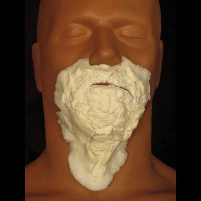 There's not enough lip balm in the world for this one. This Small Zombie Mouth Foam Latex Prosthetic fits over the mouth, chin, and décolletage to create the look of decaying skin without obstructing the breath. Rubber Wear foam latex prosthetics are carefully sculpted to provide lifelike, seamless effects that look, feel, and move like real skin. These high quality pieces are preferred by industry professionals and user-friendly enough for students and beginners! One size fits most.