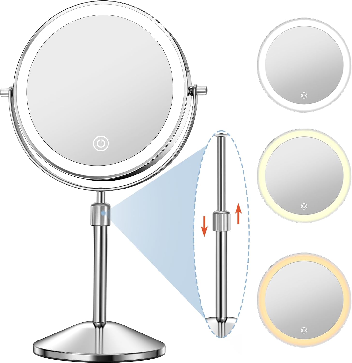 Vanity Mirror with Lights 7" Rechargeable 1x/10x Lighted Makeup Mirror Adjustable Height Double Sided Mirror with Lights 360°Rotating Makeup Mirror